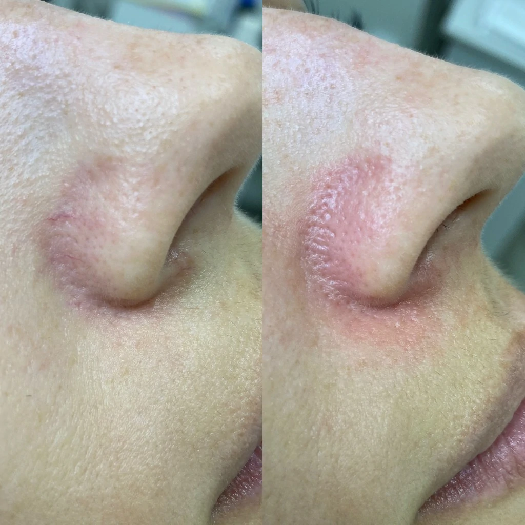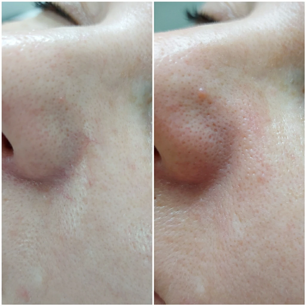 Световой луч при удалении сосуда на лице лазером не затрагивает окружающие ткани. Процедура абсолютно комфортная, лишь иногда может ощущаться легкое покалывание.