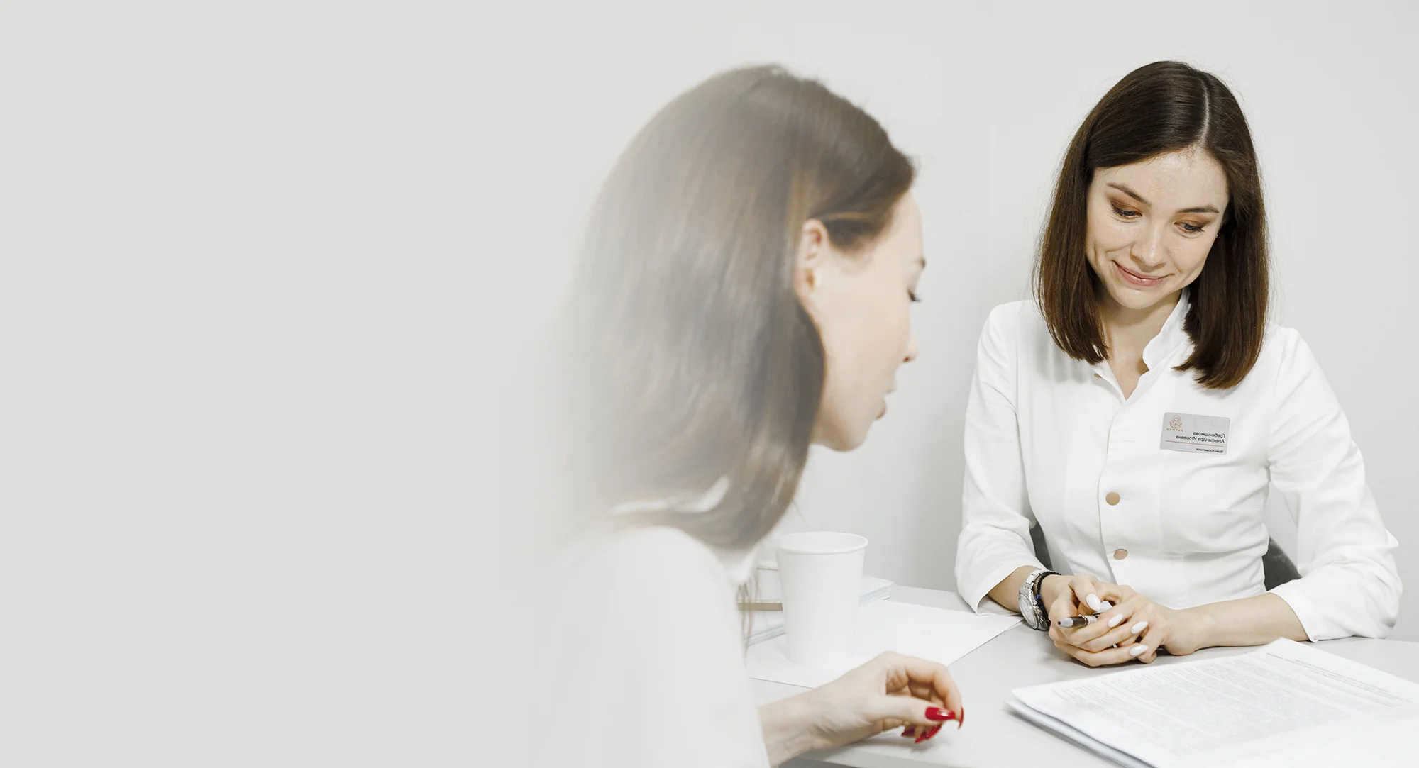 На первой встрече с врачом-косметологом не стоит волноваться, прием в клинике проходит в спокойной, доброжелательной обстановке. Наши врачи имеют высокую квалификацию. Каждому пациенту гарантирован индивидуальный подход. Не стесняйтесь задавать уточняющие вопросы. В начале консультации врач уточнит ― какая проблема беспокоит и каких эстетических результатов желает достичь пациент. Если человек обратился за конкретной процедурой, врач-косметолог поможет выработать оптимальную тактику выполнения.