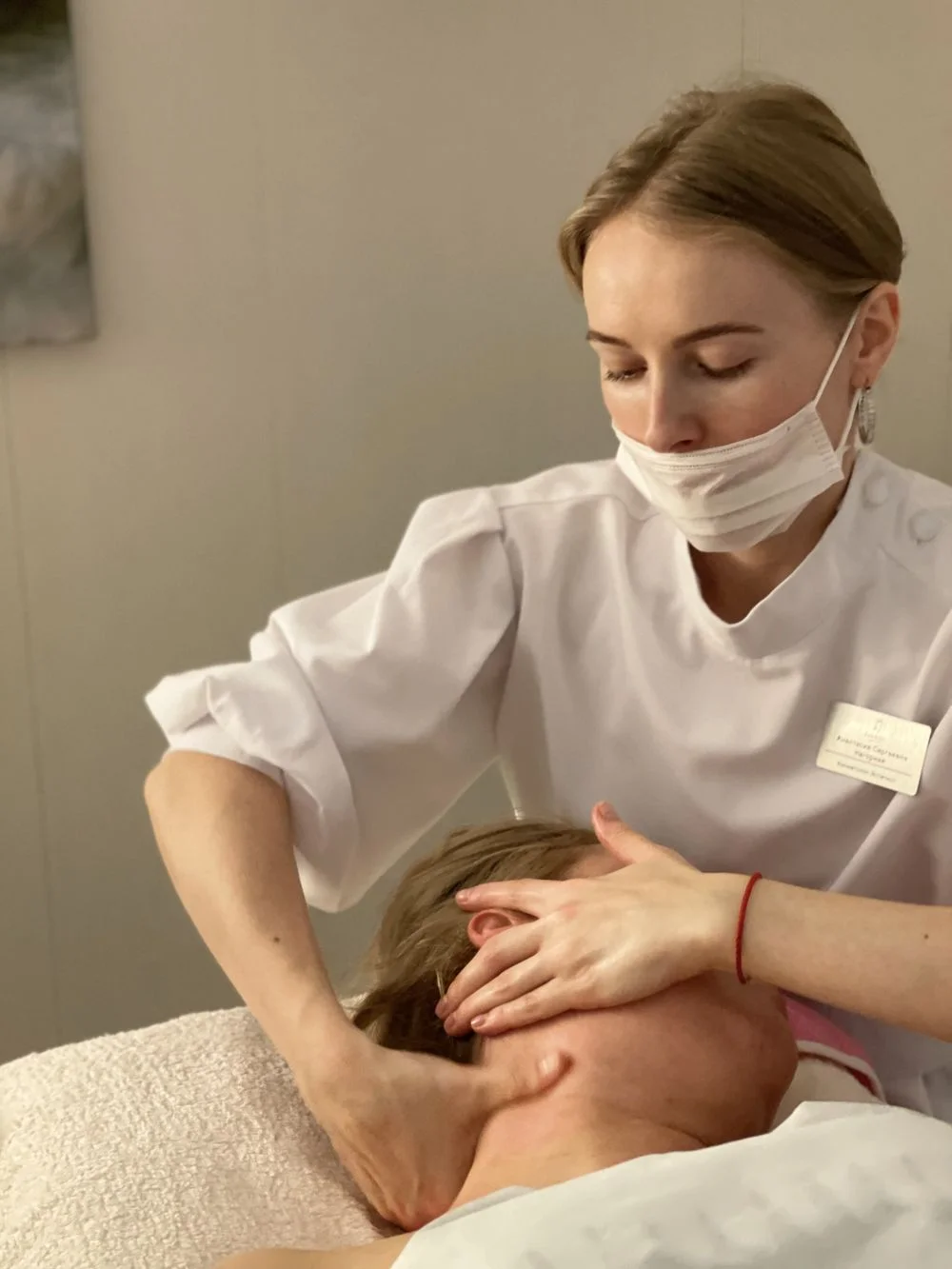 Буккальный массаж лица. Процедура длится от 20 до 30 минут. Массаж выполняется в перчатках. Воздействие на ткани довольно интенсивное, благодаря чему мышцы лица приходят в тонус, подтягивают кожу.
